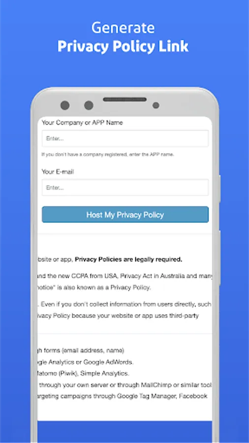 No more hundred questions to get your privacy policy link or for your ads-text link!