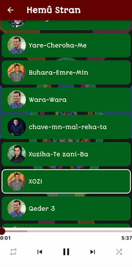 This application contains all the songs of singer and artist Abdulqehar Zaxoyi .