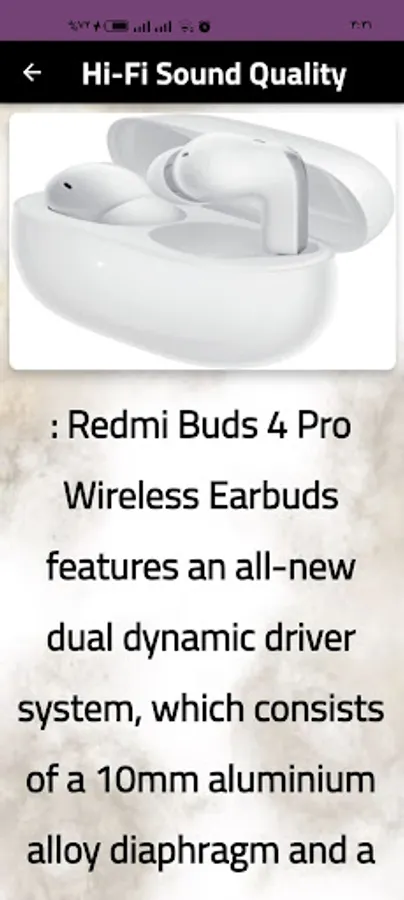 Content of Xiaomi Redmi Buds 4 Pro guide app :-