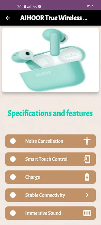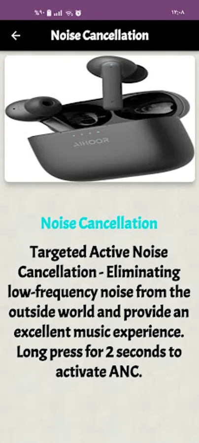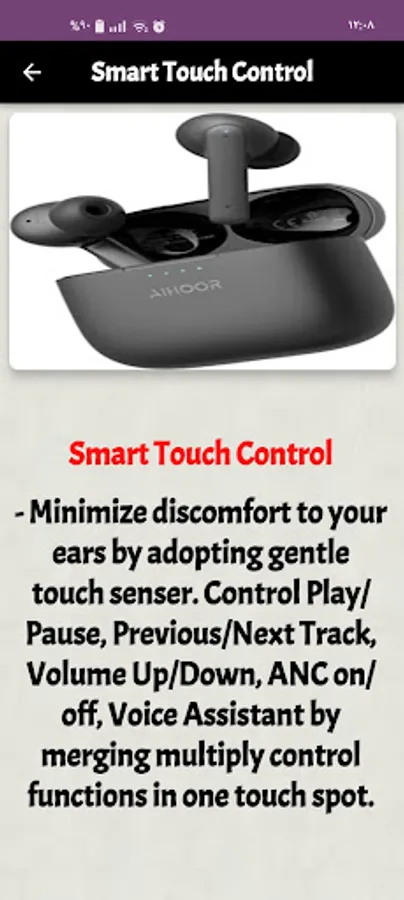 Content of AIHOOR True Wireless Earbuds Guide app :-