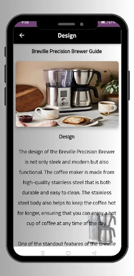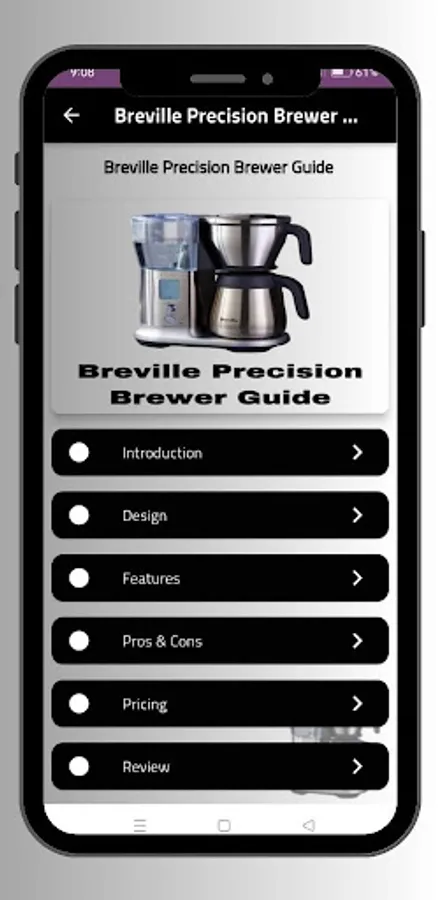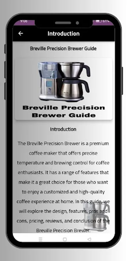 The Breville Precision Brewer Guide app is the perfect tool for coffee enthusiasts who want to learn everything about the Breville Precision Brewer. Breville Precision Brewer Guide app provides detailed information on the coffee maker's introduction, design, features, pros and cons, pricing, review, and conclusion, to help users make an informed decision.