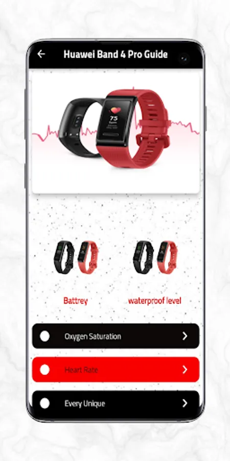 Content of HUAWEI BAND 4 PRO GUIDE app :-