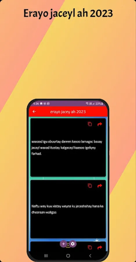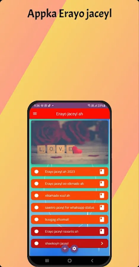 application erayo jaceyl ah somali waxaad kaheleysa erayo jaceyl oo macaan kuwas oo aad u isticmaali karto social media kafaidheyso appkan adhigo so dowload gareysaneyso. appka erayo jaceyl ah somali