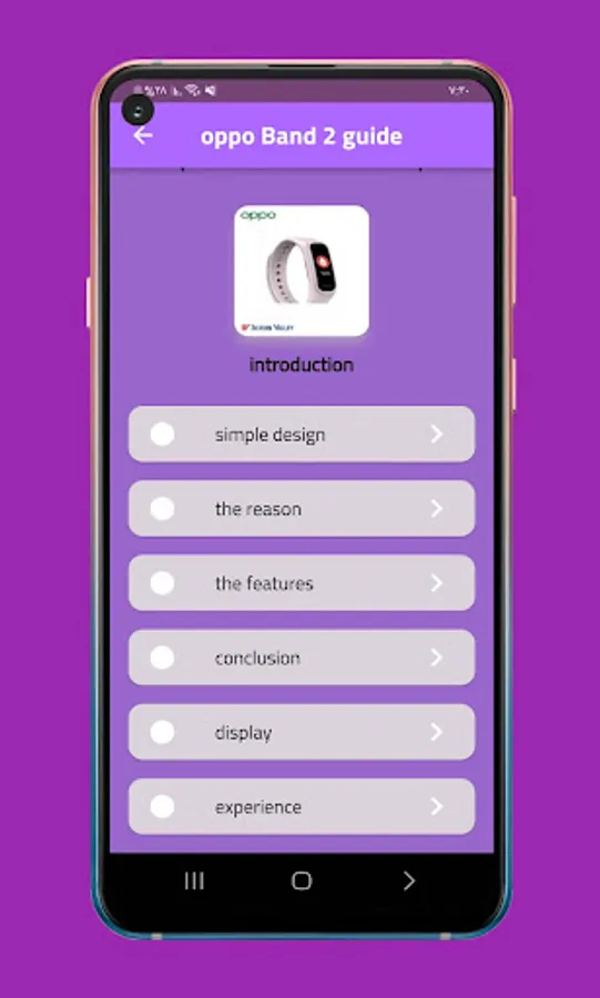 Oppo Band smart watch Guide is a review app that will give you an idea of how Oppo Band smart watch Guide works.