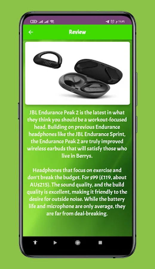 The application JBL Endurance Peak 2 Guide provides you with many information for JBL Endurance Peak 2 Guide