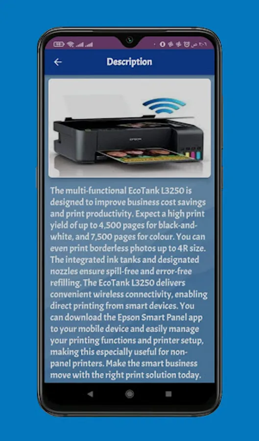 The application Epson iprint l3250 Wifi Guide provides you with many information for Epson iprint l3250 Wifi Guide