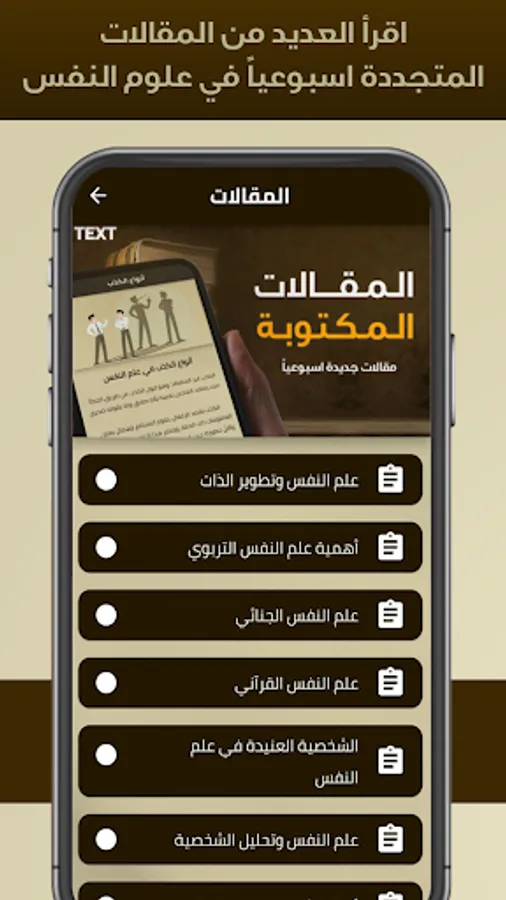 Educational articles section: The application offers a section dedicated to various articles in the field of psychology and self-development. These articles cover multiple topics including psychoanalysis, human relations, effective communication, and more from what is mentioned in this section