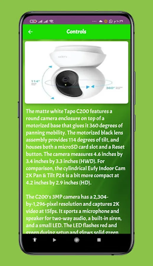 An application Tapo C200 WiFi IP Camera guide that gives you information
