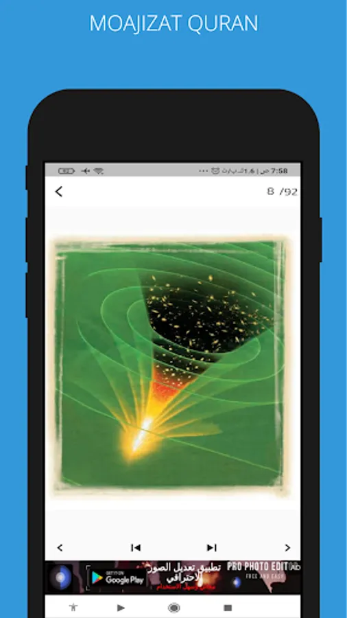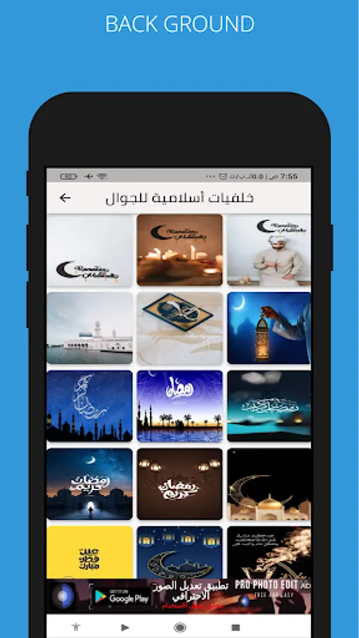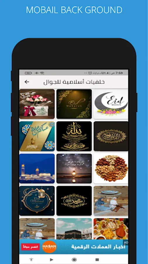 — تحتوي على مجموعة كبيرة من خلفيات الهاتف بجودة عالية وتضم ( المساجد, الكعبة المشرفة, المسجد النبوي, صور من الطبيعة, التراث الإسلامي ، المناسبات الإسلامية)