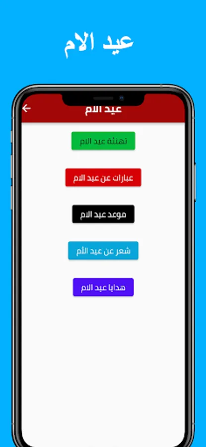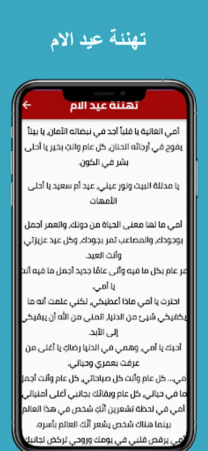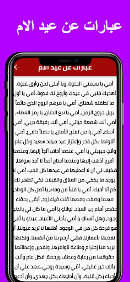 Download the Mother's Day app, it is a unique application and contains a set of distinguished lists, and among these lists are congratulations on Mother's Day, beautiful phrases for the mother, about the date of Mother's Day, as well as poetry about Mother's Day, pictures and special ideas for Mother's Day