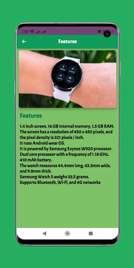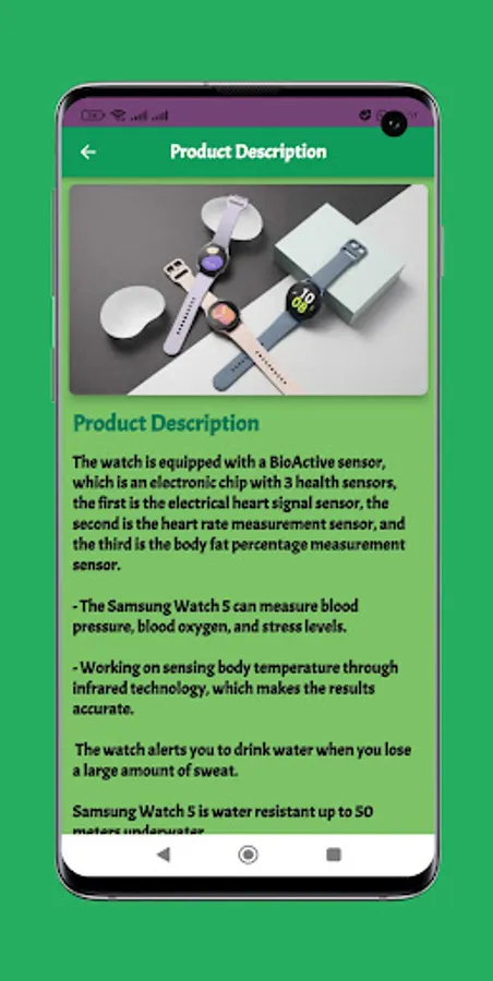 to using the Samsung Galaxy Watch5 Pro smartwatch. The app offers detailed instructions on how to set up and use the device, including