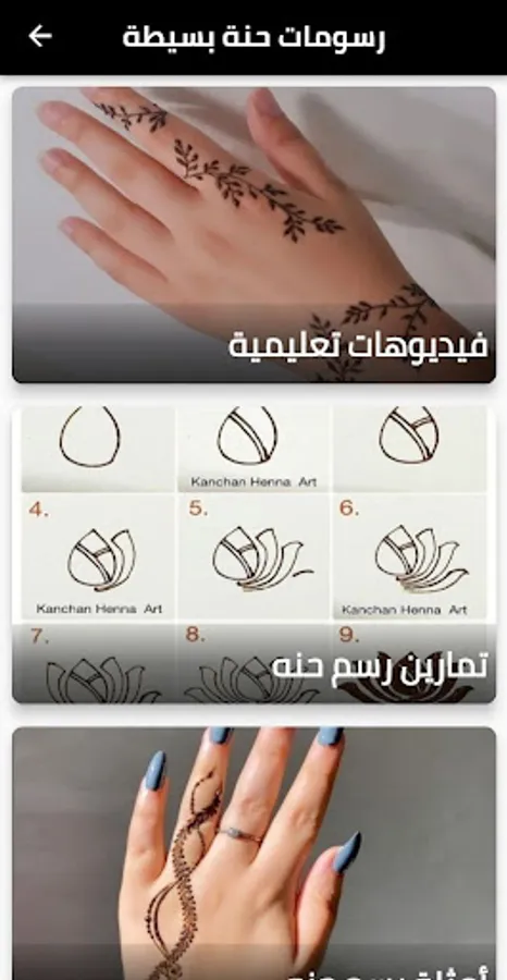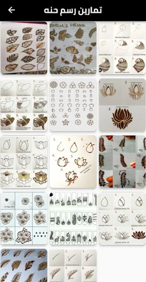 🖌️ TUTORIALS: Discover a variety of easy tutorials that guide you step by step in creating the most beautiful henna designs. You'll find lessons covering basic models and simplified drawing techniques to make learning easier.