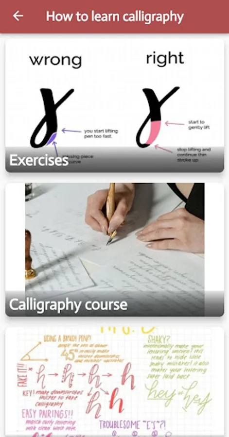 Step-by-Step Practice Exercises: Practice makes perfect! The app offers a range of guided exercises and worksheets to reinforce your learning. From tracing letters and words to freehand practice, these exercises help you develop muscle memory, consistency, and control over your calligraphy strokes.