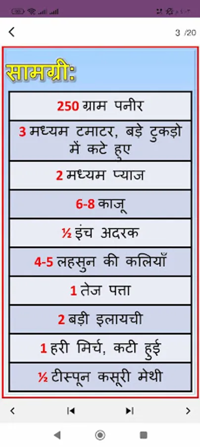 In this application you have been displayed the detailed recipe of Paneer Pasanda in Hindi. This recipe is a special treat by Nisha Madhulika, specially made to entice the paneer lover. In the application you will find step-by-step instructions on how to make paneer pasada in a traditional and easy way.