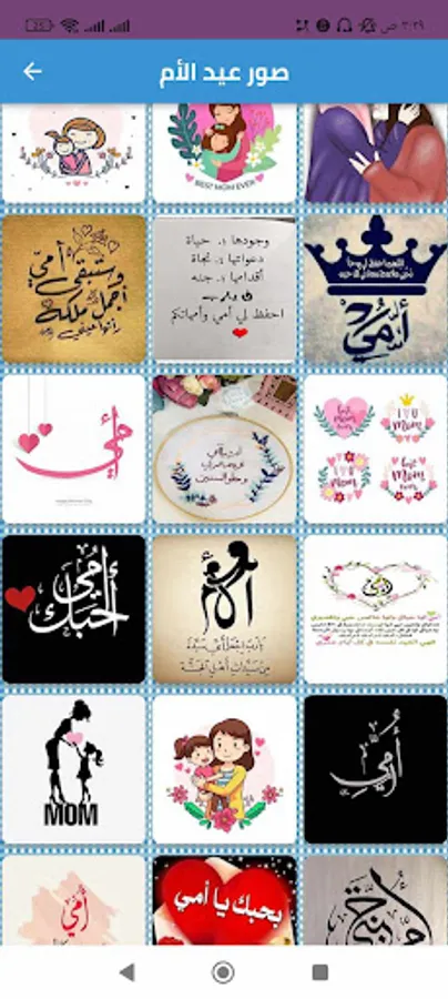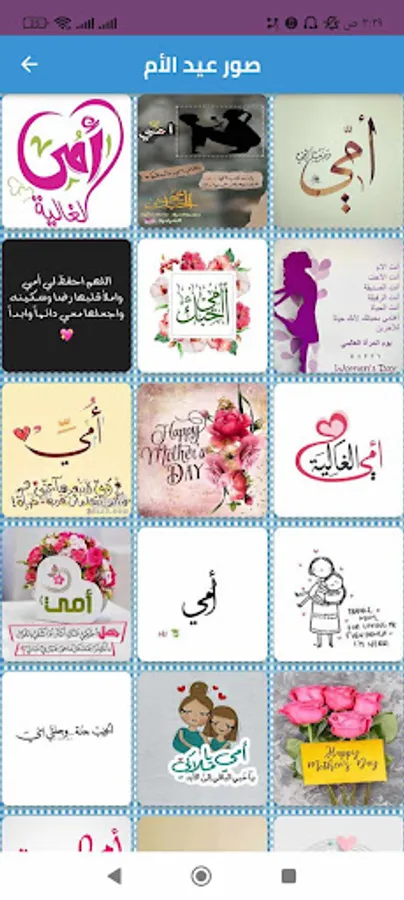 Pictures of Happy Mother's Day with words expressing the mother's virtue and the love and tenderness of the mother.