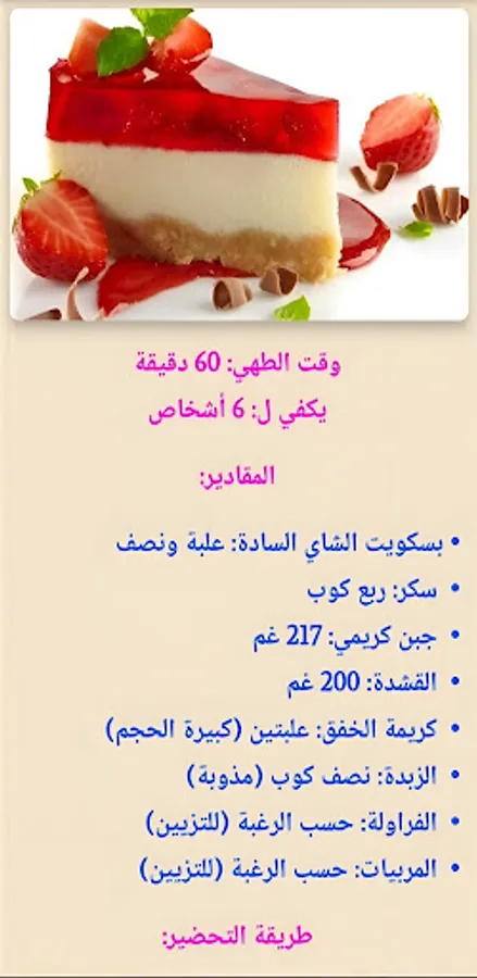 Thanks to the simple and attractive user interface of the original cheesecake method cheesecake application, you will enjoy a fun and entertaining experience while browsing the application and discovering delicious recipes. The application also enjoys fast loading and smooth navigation, which makes your experience with it unique and smooth.