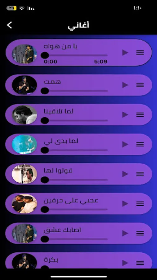 The application is also easily accessible without the need for an internet connection, which means that the user can enjoy Abdel Rahman Mohamed's songs anytime and anywhere, even when he is out of network range.