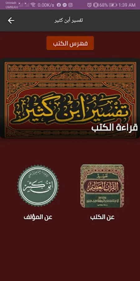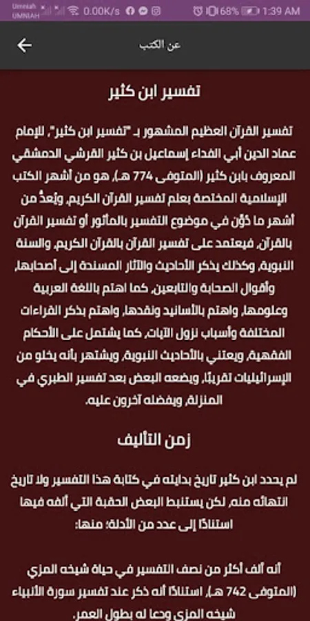 And you can read all the books completely through the application in the section dedicated to reading the entire interpretation of Ibn Kathir