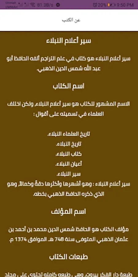 The application of the complete biography of the nobility books is an application that displays the entire series of famous Islamic books (Birth of the Nobles' Books) for its owner Shams Al-Din Al-Dhahabi. The book, which is Shams Al-Din Al-Dhahabi, and a complete introductory section about the entire series of books and what it contains