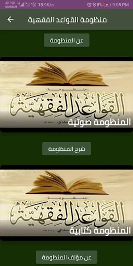 In it, you can listen to the entire system of jurisprudential rules of Saadi in full with multiple audio recordings, and each recording contains a special voice to read the system of jurisprudence rules