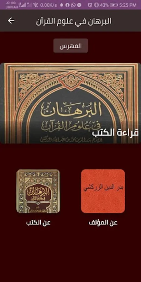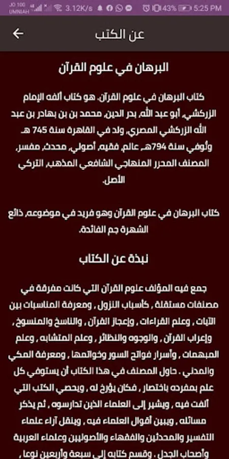 The application of the book of proof in the sciences of the Qur’an is an application that displays the entire book of proof in the sciences of the Qur’an specialized in the sciences of the interpretation of the Noble Qur’an by its author Badr al-Din al-Zarkashi. The book is presented in a wonderful and detailed manner