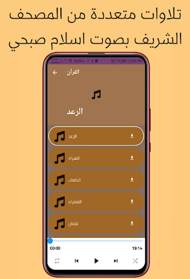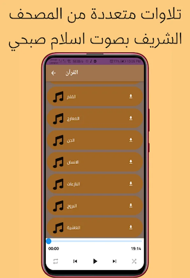 And you can listen and download any surah with the voice of Islam Sobhi now through this application for free