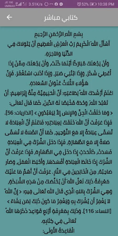 And the book or treatise of the Four Rules of Sheikh Imam Muhammad bin Abd al-Wahhab, which included a report and knowledge of the rules of monotheism, the rules of polytheism, the issue of ruling on polytheists, denied intercession, and proven intercession.
