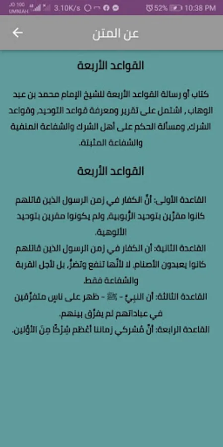 The application of the four rules board with the explanation is an application that displays the entire board of the four rules of its author, Muhammad bin Abdul Wahhab, which talks about certain rules in matters of the Islamic religion. From them, you can also find a full explanation of the four rules