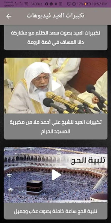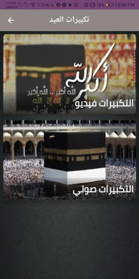 And within the application, you can listen to the takbeers through repeated audio recordings, or listen and watch them via video