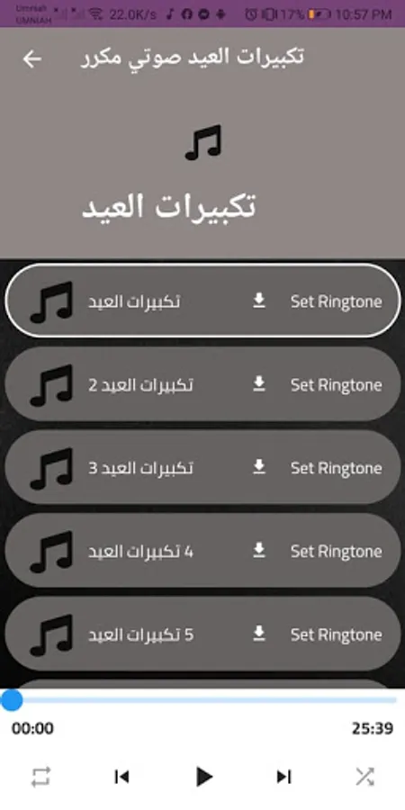 The user can choose what he wants from the recordings of the takbeers, and he can download the takbeers on his device for free