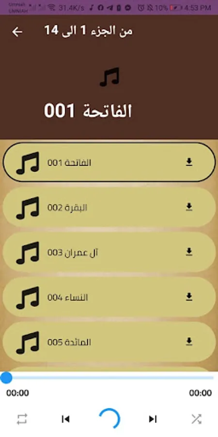 One of the beautiful features found in this application is that you can download any surah in the Noble Qur’an with the voice of Ali Jaber for free via the application on your mobile device and listen to it without the Internet