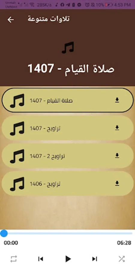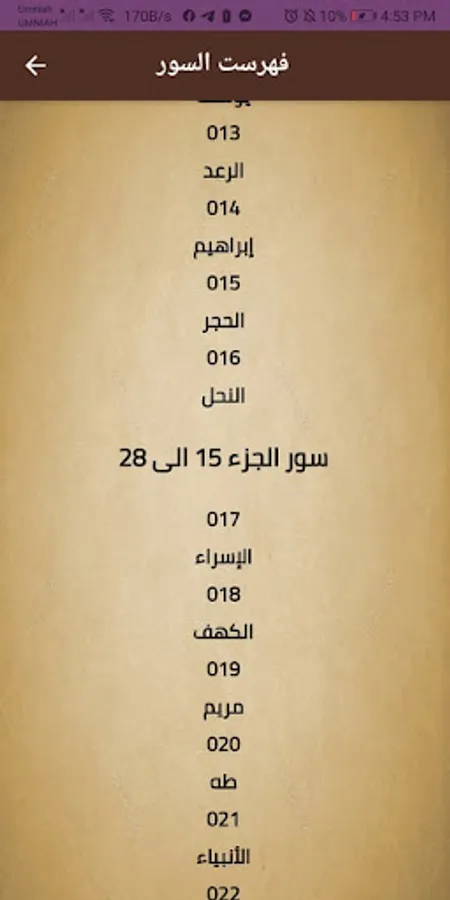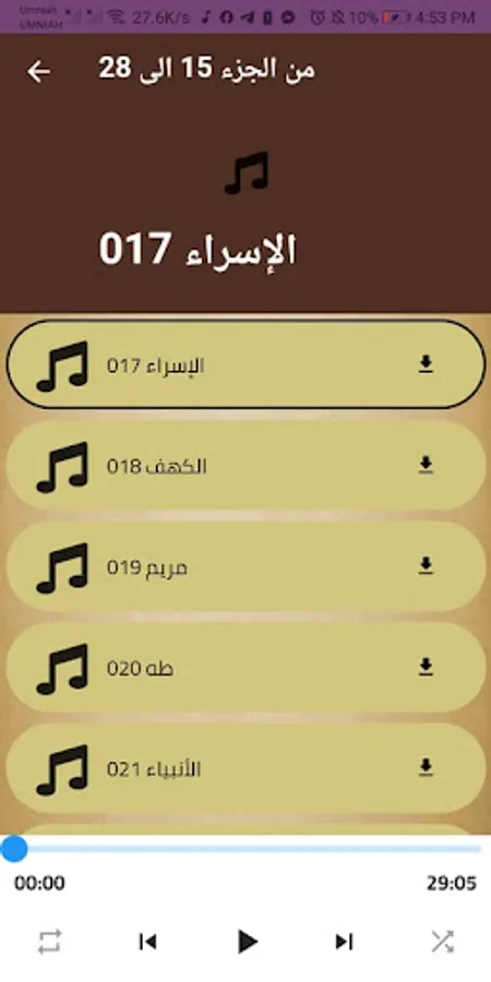 In this section you will find recitations from Part 15 to 28, and in these parts you will find very diverse recitations, and from these recitations