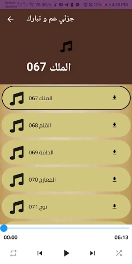 Surat Tabarak, the pen, the messengers, the news, the disputes, the mutatifins, the surahs of al-Mu’awwadat, the short and quick surahs, and many other surahs are present in this application through the voice of Sheikh Ali Jaber