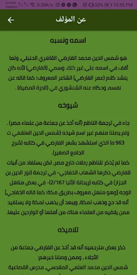 The author of this system is Shams al-Din Muhammad al-Fardi al-Qahiri al-Hanbali. He was called (Al-Fardi) because he was chanting the words of (Omar Al-Fardi), the well-known poet; As he said about himself, and Al-Shanchouri narrated it from him in (Al-Durra Al-Madhiyah).