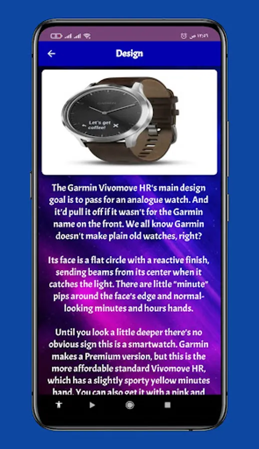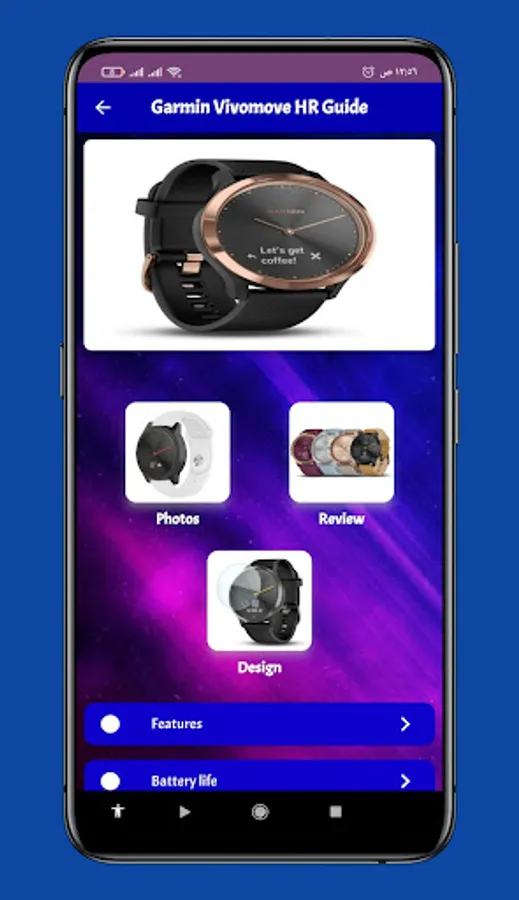 The application Garmin Vivomove HR Guide provides you with many information for Garmin Vivomove HR Guide