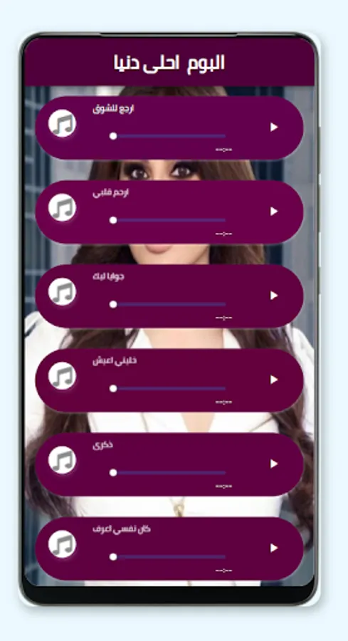 Albums and songs of the application: Ahla Al-Dunya album - Bedi Doub album - Back to longing and more songs and albums coming soon ...