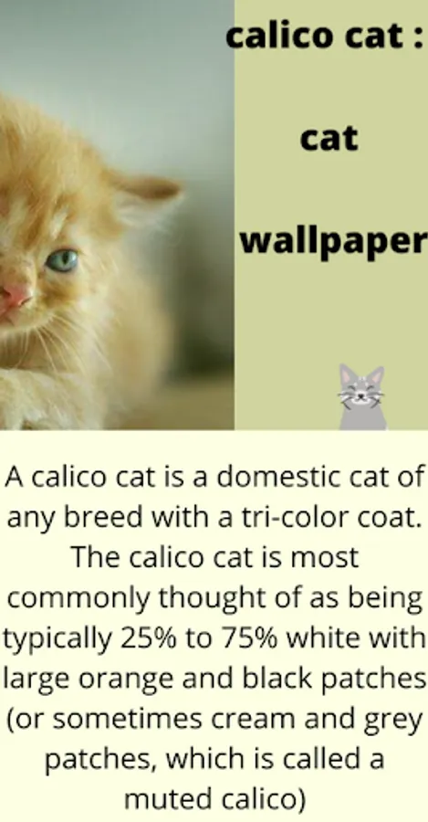 The calico cat : cat wallpaper application contains collection of images of cats and kittens.