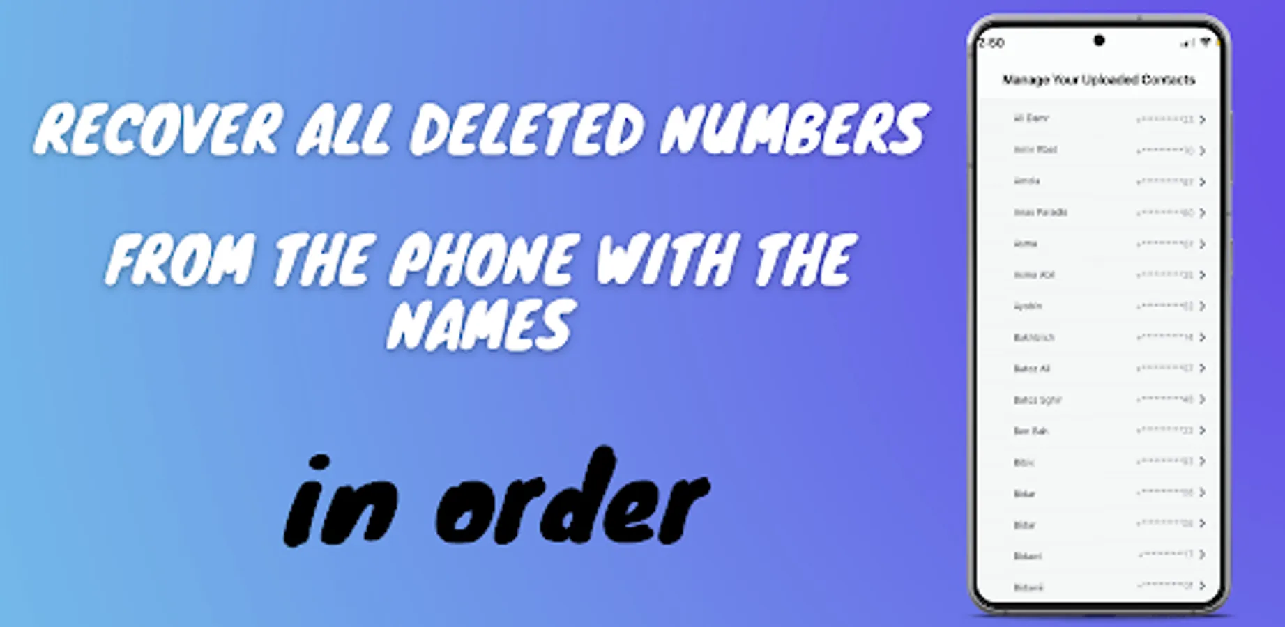 This application enables you to retrieve all your deleted numbers, as you can recover contacts, names, and numbers, and there is no need for duplicate contacts because our program is clearly available.