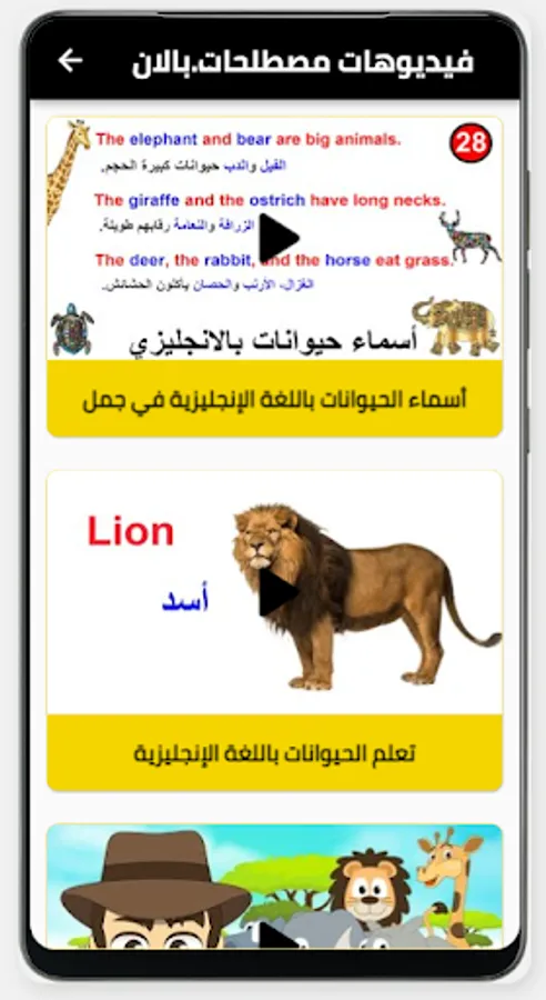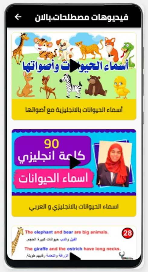 The application of the names of animals in English with high quality and with an explanation through videos and pictures with high accuracy