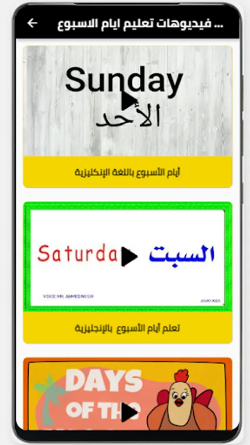 The application of teaching the days of the week in English with high quality and with an explanation through videos and pictures with high accuracy