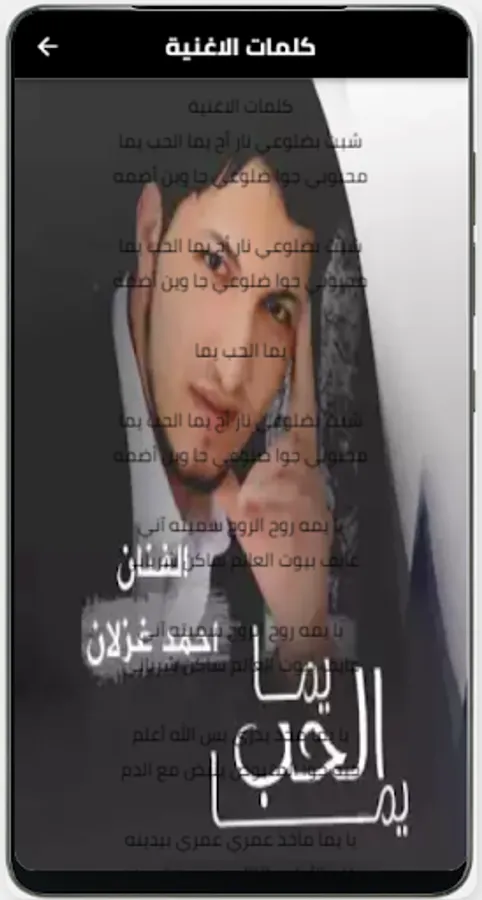 Now the song "Yama Al Hob Yoma" is available without the net only on Google Play, it is available in Mp3 and Mp4, it is also available with the lyrics of the song Ahmed Ghazlan - Yama Al Hob Yoma complete.