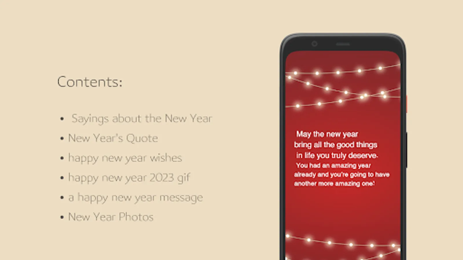 The New Year's sayings application contains congratulations on the occasion of the New Year 2023, through which you can send it to your family or friends or post it on social media