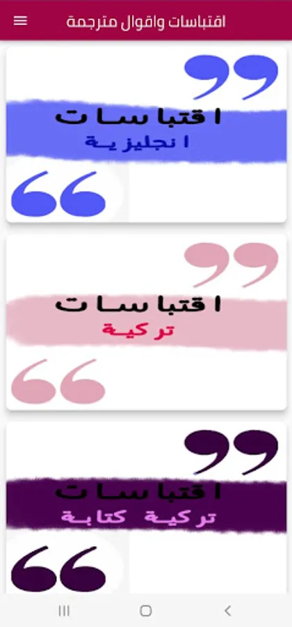 The application offers translated quotes and sayings, quotes from more than one language, such as English / Arabic / Turkish and French, about the most beautiful phrases and images that you can also put as a background and image on the profile, translated quotes in English and Arabic that suit your taste