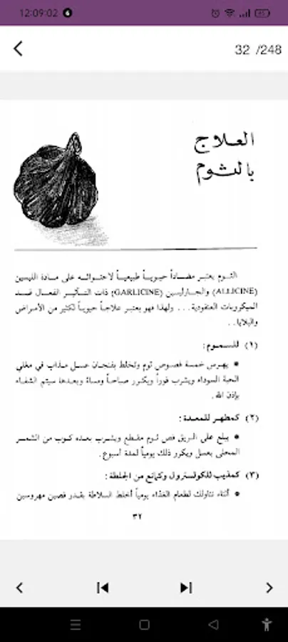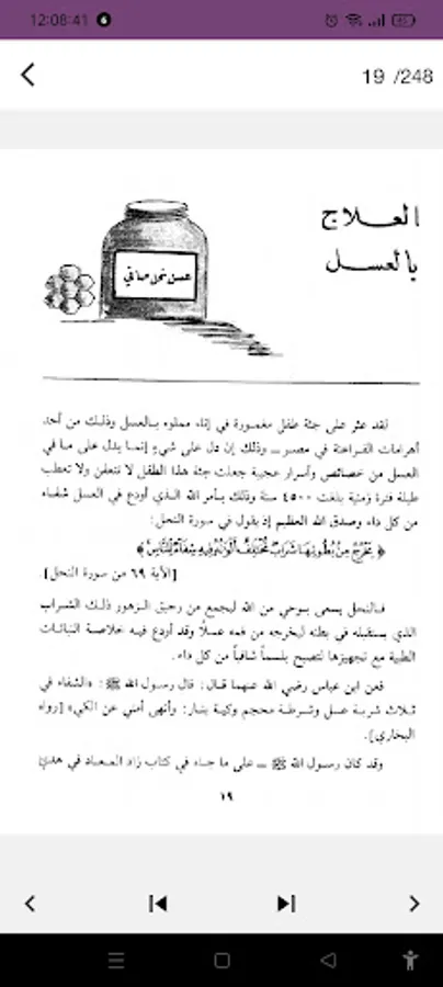 This book talks about the importance of herbal treatment and treatment with garlic, honey, onions, parsley, berries, lupins, figs, dates, guavas, fenugreek and chickpeas.