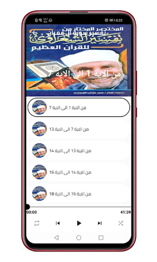 The application also enables you to listen to Al Shaarawy's interpretation of the Qur'an with high quality and clear voice.