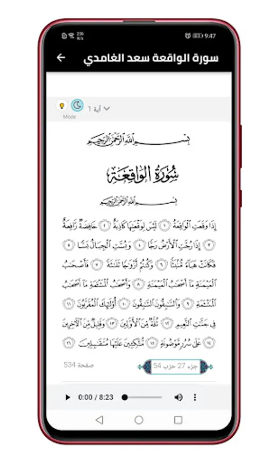 Surat Al-Waqi'ah is written in a large font with complete voice that enables you to read Surah Al-Waqi'ah written from within the application with ease