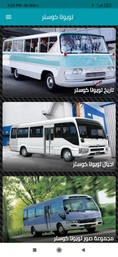 And get lost in your hands this application that contains information about Toyota Coaster buses, generations and Toyota Coaster bus models