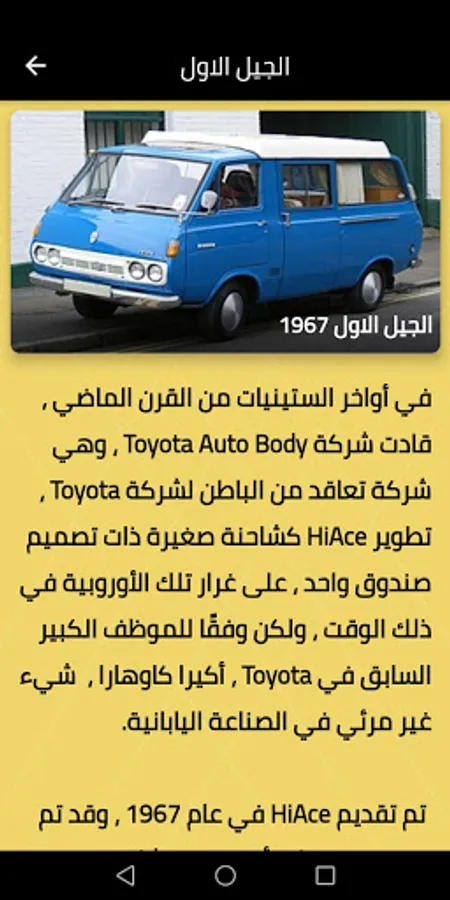 The Toyota Hiace application contains the most important information about these trucks, generations and manufacturing details