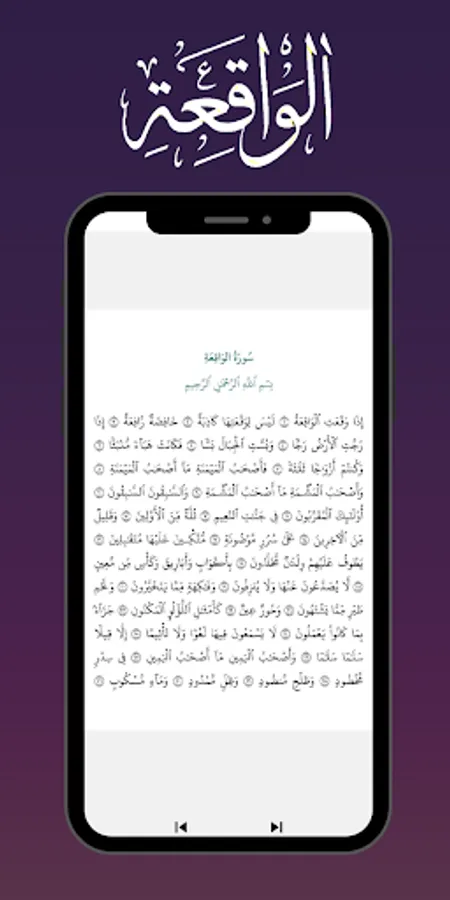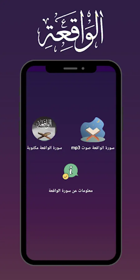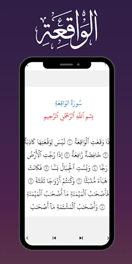 The Android application Surat Al-Waqi’ah written in a large font with complete voice that enables you to read Surah Al-Waqi’ah written from within the application with ease