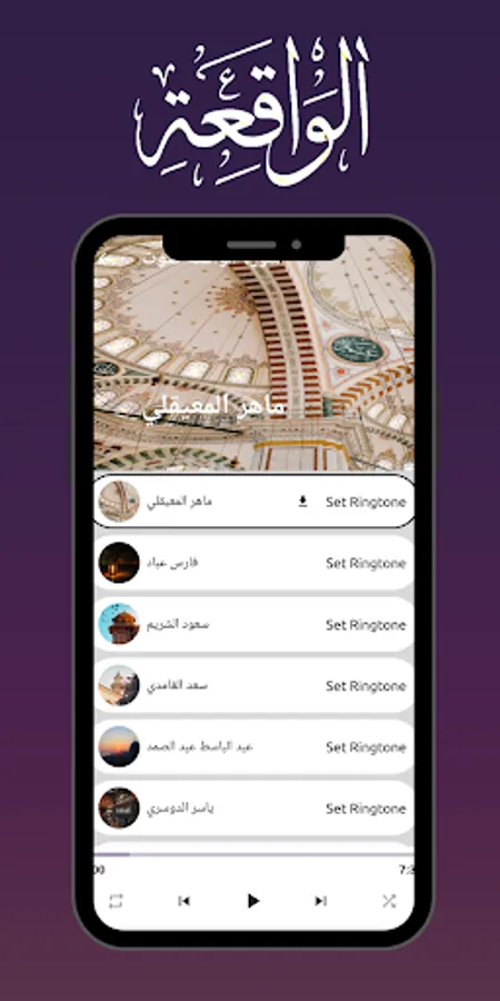 - The application of Surat Al-Waqi'ah written in a large font contains a group of reciters of Surat Al-Waqi'ah mp3